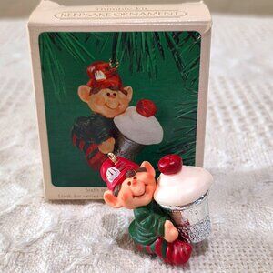 1983 Hallmark Keepsake Ornament Thimble Elf #6 Ice Cream Holiday Christmas NIB