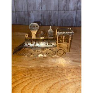 This intricately crafted brass train engine ornament adds a touch of vintage charm to any collection. The detailed cutouts and polished finish make it an elegant piece for home decor or as a unique addition to festive decorations. Its craftsmanship reflects timeless appeal and quality.