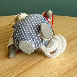 This mouse is no ordinary rodent; it's a fashion-forward holiday ornament rocking striped overalls and a floral shirt while holding a bell to jingle your festive spirit.