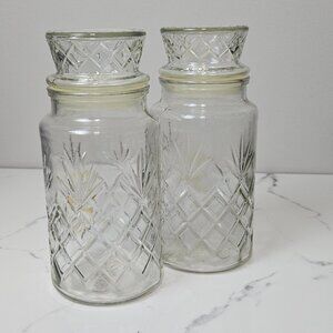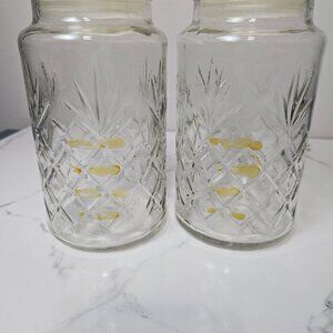 1983 Mr. Peanut Clear Glass Canister Planters Jar with Lid Logo Bottom Set of 2