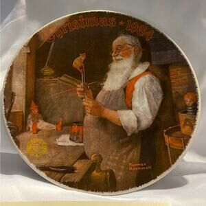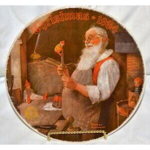 1984 Bradford Exchange Norman Rockwell Plate Christmas Santa In His Workshop