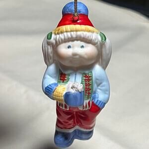 Adorable 1984 Cabbage Patch Kids Christmas ornament featuring a sweet blonde girl holding a cup of cocoa! This vintage ornament is in excellent condition with vibrant colors and all original details intact. She's dressed in winter clothing with that classic CPK charm.