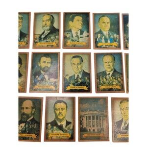 1984 Cambell Taggart, Inc, Know the Presidents cards. They are the size of a baseball trading card. Some are in better condition than others. These cards have yellowed and feel kind of grimy, but i wasnt sure how to clean them. Neat collection.