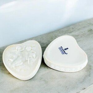 1984 Lladro Small Heart Shaped Trinket Box Three Cherubs Light Blue Porcelain