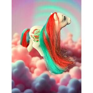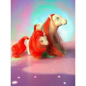 1984 My Little Pony G1 Merry Treat & Baby Stocking – Christmas Ponies, Red & Green Hair