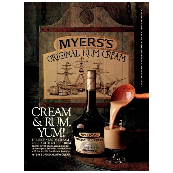 1984 Myer's Original Rum Cream Vintage Print Ad Pub Barrel Wood Sign Wall Decor