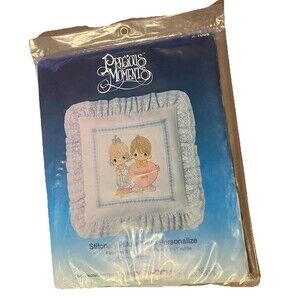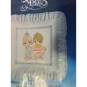 The 1984 Precious Moments Paragon Personalized Pillow Cross Stitch Needlepoint Kit includes all the necessary materials to create a beautiful hand-embroidered pillow with a baby theme. The kit includes a needle, embroidery thread, instructions, and fabric/cloth. Made in the United States by Paragon, this kit allows for a personalized touch with the option to customize the design. Perfect for crafters looking to create a unique and special piece with a vintage feel.