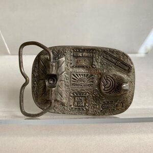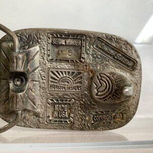 1984 Vintage Horizon Designs Happy Holidays Silver Belt Buckle