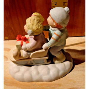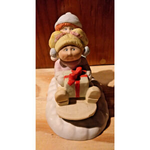 1984 Xavier Roberts Cabbage Patch Ceramic Special Thoughts Boy/Girl Sledding
