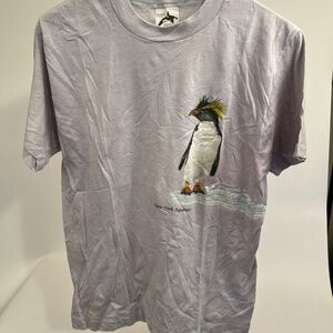 1985 Light Purple Harlequin Nature Graphics New York Aquarium Penguin Tshirt XL.