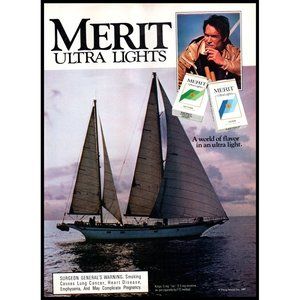 1985 Merit Cigarettes Vintage Print Ad Sailing Sailboat Yacht Nautical Wall Art