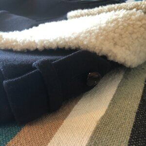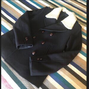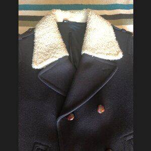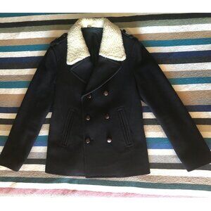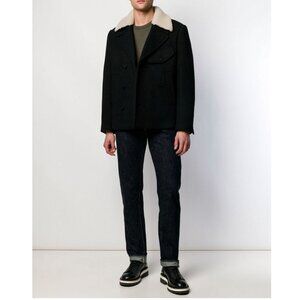 $1985 Neil Barrett Wool Navy Blue Peacoat with Real Shearling Collar. Medium
