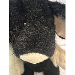 This is a 1985 Boyds Collection Maggie O’Piggy jointed stuffed animal is a 17-inch plush teddy bear with a pig design. This classic jointed teddy features black color and is filled with beans. Preowned and in very good used condition.