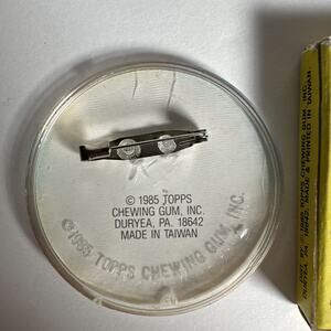 This vintage Big Bad Button Pin features a melted bear design from the 1985 Topps Gross Bears collection, inspired by Garbage Pail Kids. Made in Taiwan, this pin is not handmade or modified. It is a unique collectible item that captures the quirky and playful style of the era.