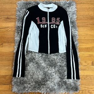 1985 Vintage Zipup Shirt. In perfect pre-owned condition only worn a couple of times. Can be worn as a light sweater or as a shirt on its own:) super vintage cute look! This zip-up is also very light weight and cozy. This is a slim fit L but I added measurements in photos! Feels like a M in my opinion.