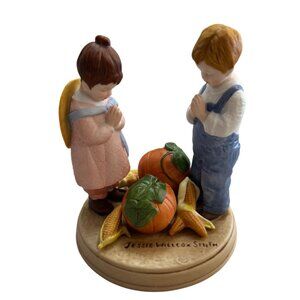 Celebrate the spirit of gratitude with this detailed handpainted porcelain figurine. A timeless collectible from 1986, it exudes charm and elegance.