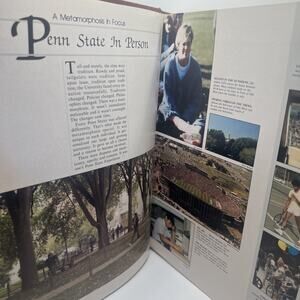 1986 Pennsylvania State University yearbook La Vie. Absolutely pristine, as good as new. Pages are clean, unmarked, and binding is tight. Cover is gorgeous, embossed, and sturdy. Please zoom in to see the pictures of this fantastic piece of Penn State nostalgia.