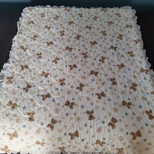 1986 Precious Moments Boy w/ Teddy Bear Quilted Crib Comforter Eyelet Trim 42x33