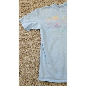 Vintage ladies light blue short sleeve tshirt. This is an XL. The graphics say 1986 Rhapsody. There are 4 flying kittens on the front. I dont see any issues accept small bleach stain that I have photographed. Cute graphics. Single stitch.