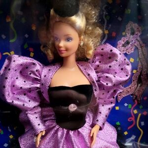 Celebrate with the Mardi Gras Barbie Doll in a stunning purple outfit.