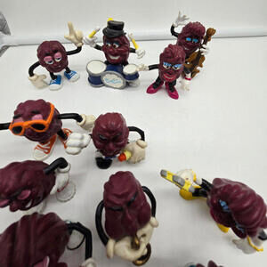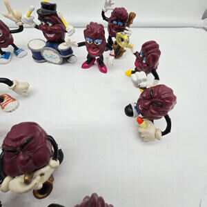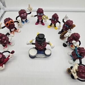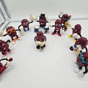 Delve into the world of the '80s nostalgia with this vibrant set of 11 California Raisins. Each character from the iconic franchise is expertly crafted, showcasing the purple hues and distinctive features that have captivated fans for generations. Whether you're a dedicated collector or looking to add a retro touch to your display, this set promises to be a standout addition.These California Raisins are not just toys but pieces of memorabilia that embody the fun and playful spirit of the era. The meticulous attention to detail ensures that each figurine is as delightful to look at as it is reminiscent of the smooth moves and catchy tunes of the period. Bring a piece of your childhood into your collection today.