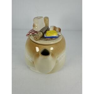 1987 England Sunshine Ceramics COTTAGE LOAF BREAD AND BUTTER TEAPOT with CRAZING