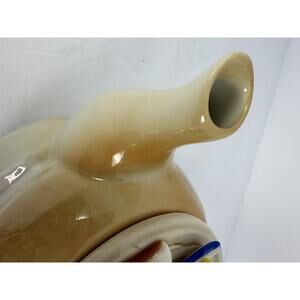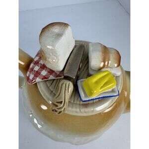 Note: There is quite a bit of crazing in the glaze of the teapot, quite common, please see pics for additional detail. There is also a small chip in one of the loaves of bread on the lid, but it has been repaired with glaze.