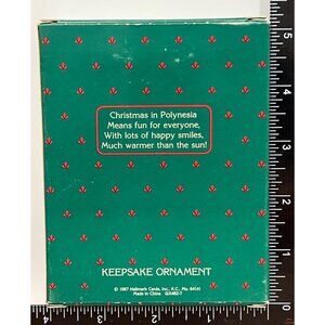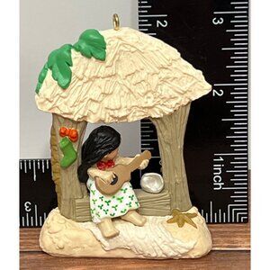 This Hallmark Keepsake Ornament from 1987 showcases a charming Polynesian scene with a ukulele player. Part of the Windows of the World series, it captures the essence of a warm, festive holiday. Ideal for collectors or as a decorative piece, it adds a unique touch to any Christmas decor.