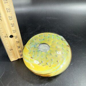 1987 Hand Blown Glass Paperweight Artist Signed Eye Small Bubbles Multicolor Vtg