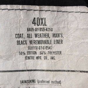 Pre owned and in good condition. No holes stains or repairs. Jacket has a really nice patina from age. Almost like a mild stone wash. From experience, this overcoat will keep you dry in a downpour.