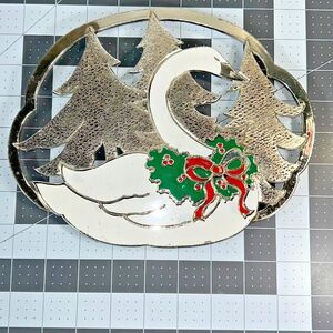 1987 William A. Rogers Silver Plated Enamel Christmas Holiday Swan Trivet 9.5"L