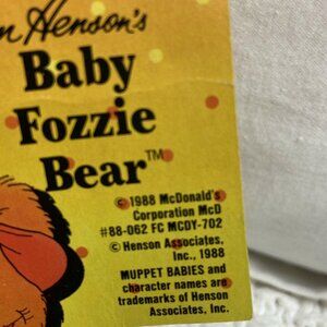 1987/88 Muppets Fozzie Bear Christmas Plush Stuffed Animal 7" McDonalds Tag