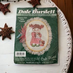 1988 Dale Burdett Cross Stitch Kit Pajama Girl With Puppies CCK714 Cottagecore. Condition is new in package. Tiny opening to plastic on front. All sides sealed. Measures about 5" tall in frame. Please see all photos for detailed condition.