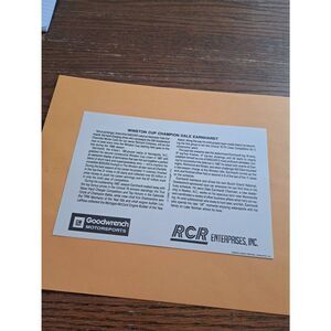 Vintage 1988 Dale Earnhardt 9x6 driver card featuring Earnhardt crouched in front of his iconic black No. 3 GM Goodwrench Chevrolet Monte Carlo in Daytona with a crowd in the background. Sponsored by Richard Childress Racing, the car showcases authentic decals including Goodyear, 76, Edelbrock, Moog, Moroso, Simpson, Mac Tools, Wrangler, Gatorade, True Value, Bush, Holley, and more. The back details Earnhardt’s historic 1987 season, with 11 wins, 21 top-five finishes, and over $2 million in earnings. Includes stats, career highlights, and personal background. Printed by Sports Image Inc., Charlotte NC. In very good condition with no rips, creases, or stains.
