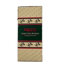Vintage 1988 Enesco Santa and Mouse Christmas Tree Hanging Ornament NORTH POLE DEADLINE. This ornament is new it’s box.