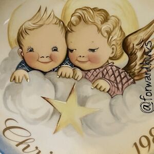 Celebrate the joy and whimsy of the holiday season with this vintage porcelain plate titled “Cheerful Cherubs”.