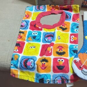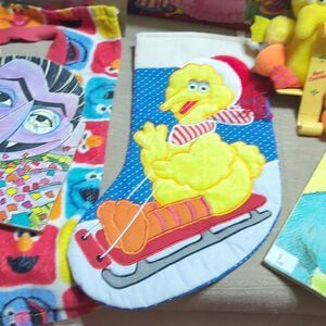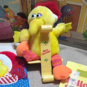 1988 Sesame Street Big Bird Plush Christmas Stocking Hanger Holder & stocking