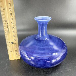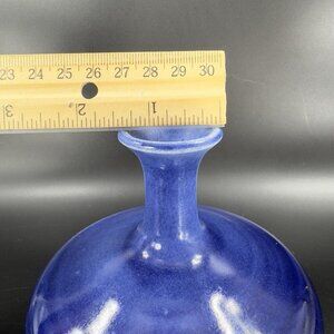 1988 Vintage Hand Made Studio Art Pottery Vase Small Mouth Cobalt Blue Signed