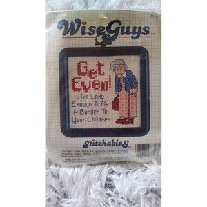 1988 Wise Guys Stitchables Cross Stitch Kit 7718. "Get Even Live Long Enough "