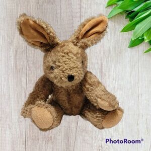 This little guy stands about 11" tall from his feet to the tips of his ears. Jointed legs let him sit and stand.