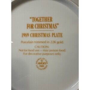 Charming 1989 Avon “Together for Christmas” decorative plate featuring a festive bear family around a piano. Porcelain trimmed in 22K gold. Marked on back. For decorative use only (not food safe). Excellent vintage display for holiday decor or Avon collector.
