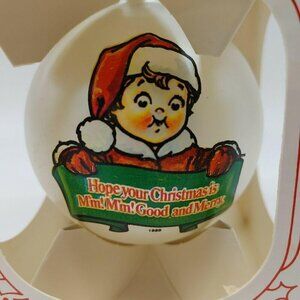 Vintage 1989 Campbells Soup Kid On White Ball Christmas Collectors Ornament