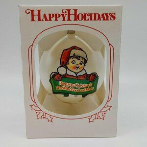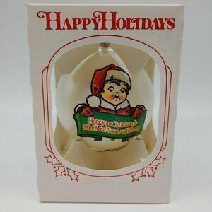 1989 Happy Holidays Campbells Soup Kids White Ball Christmas Collectors Ornament
