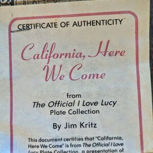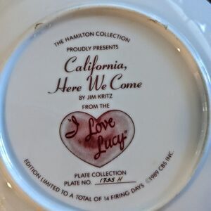 1989 I Love Lucy plate collection "California, Here We Come" Plate