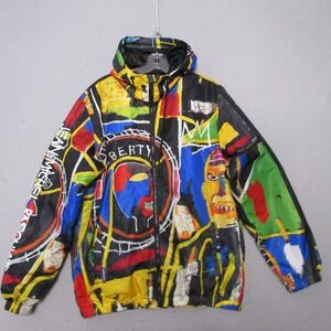 This fabulous vintage find has been stored since away since it was purchase in 1989. It was never worn. It shows some miscellaneous, dirt and stains from being stored. Perhaps a proper dry cleaning or wash would remove most of the marks and staining. This was made by custom classics in Marina del Rey. Made in the USA. Marked size Large. The jacket is best described as a member's only style. The Embroidery and details are amazing. Please keep in mind this is from 1989 - it has a bit of vintage smell and stains for storage, not from being worn.