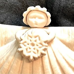 White Bisque Shell Angel holding a snowflake