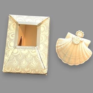 1989 Margaret Furlong 3" Shell Angel with snowflake Christmas Ornament with Box