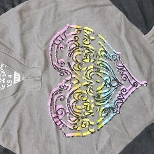 1989 PLACE Black and Grey Hooded Tee with Multi-color Heart Design