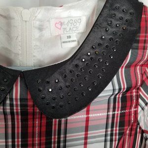 1989 Place Girls Plaid Dress Size 10 | Black Rhinestones on collar | Silver Line