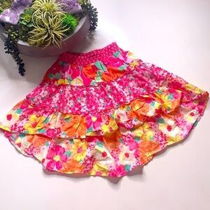 1989 Place High Low Bold pink Floral Tier Layer Skirt size 4 girls